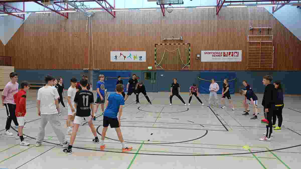 Vom 14. bis 16. Januar nahmen wir in der Sportschule Hennef an einer Sporthelferausbildung teil. Begleitet wurden wir dabei von Frau und Herrn Nettingsmeier, gemeinsam mit den Schüler:innen des Gymnasiums Leichlingen und Herrn Jestädt sowie den Schüler:innen der Realschule Wesseling mit Herrn Özkurt. In diesen drei Tagen haben wir viele neue Dinge gelernt, neue Leute kennengelernt und viel Zeit miteinander verbracht.Wir begannen die Ausbildung mit einem Kennenlernen, bei dem sich zunächst die Lehrer vorstellten. Anschließend stellten sich die Schüler:innen untereinander mit einem Kennenlernspiel im Seminarraum vor. Dort absolvierten wir auch einen Erste-Hilfe-Kurs, lernten viel über das richtige Führen einer Sportstunde und besprachen, wie ein „idealer“ Sporthelfer sein sollte.