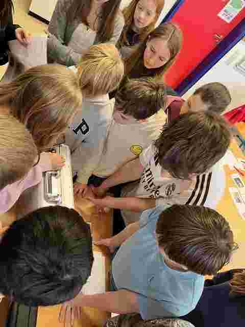 It was an ordinary morning at school. We expected a double English lesson and waited for our English teacher. When she arrived, everything seemed to be normal at first and the lesson began. But then a foreign woman came into our classroom. When she introduced herself, we knew something really exciting was going to happen. No normal English lesson , but a big surprise prepared by our teacher: We were about to begin our escape room!We were divided into groups and got our first clues in English, which was difficult for some pupils, but others in the team could help them. At first it was a bit confusing, but soon we began to work together in our groups to solve the clues one by one. We even got to go outside to the schoolyard and search clues with small metal detectors.