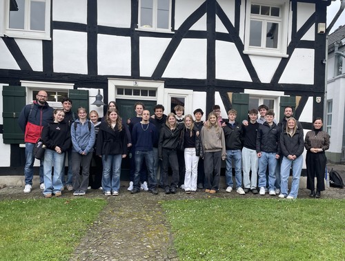 Am 25. März besuchten 20 Schülerinnen und Schüler der Jahrgangsstufe EF im Rahmen des Geschichtsunterrichts die Gedenkstätte „Landjuden an der Sieg“ in Windeck-Rosbach. Begleitet wurde die Exkursion von Herrn Becker und Herrn Suchetzki.Vor Ort wurden wir von Frau Saskia Klemp durch das Programm geführt, die nicht nur für die Gedenkstätte tätig ist, sondern auch stellvertretende Schulpflegschaftsvorsitzende an unserer Schule ist. In der Ausstellung erhielten die Schülerinnen und Schüler eindrucksvolle Einblicke in das jüdische Leben im Rhein-Sieg-Kreis am Beispiel der Familie Seligmann, in deren ehemaligem Wohnhaus sich die Gedenkstätte heute befindet.